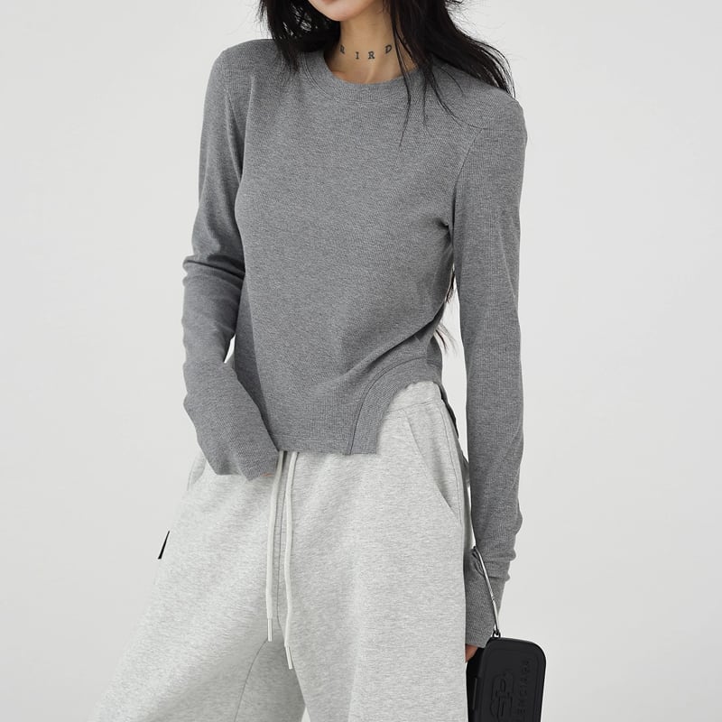 アシンメトリー 長袖 ショート丈 カットソー 3color ATO0012