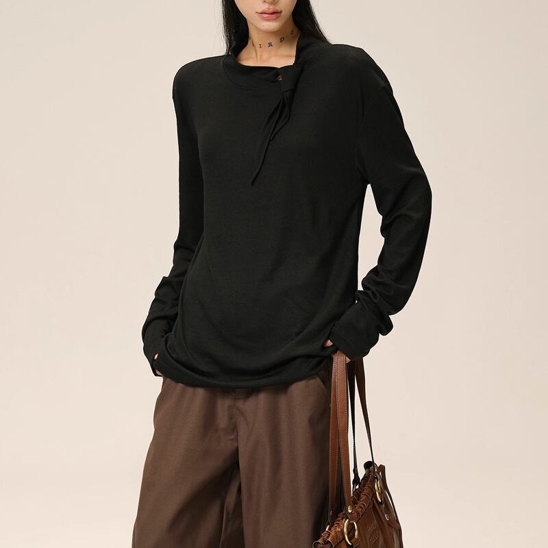 リボンタイ 長袖 ヒップ丈 ルーズフィットTシャツ 3color ATO0013