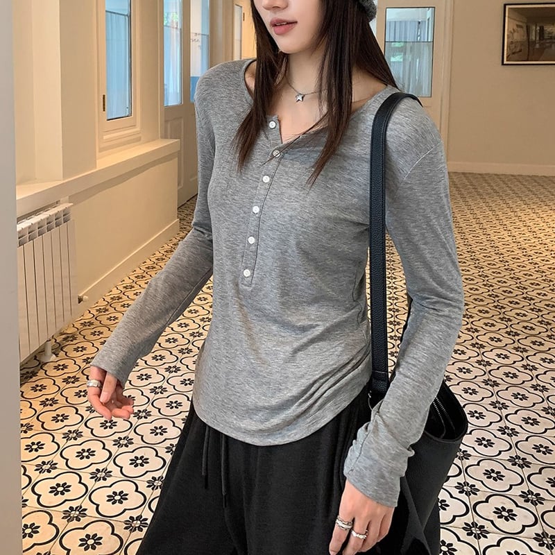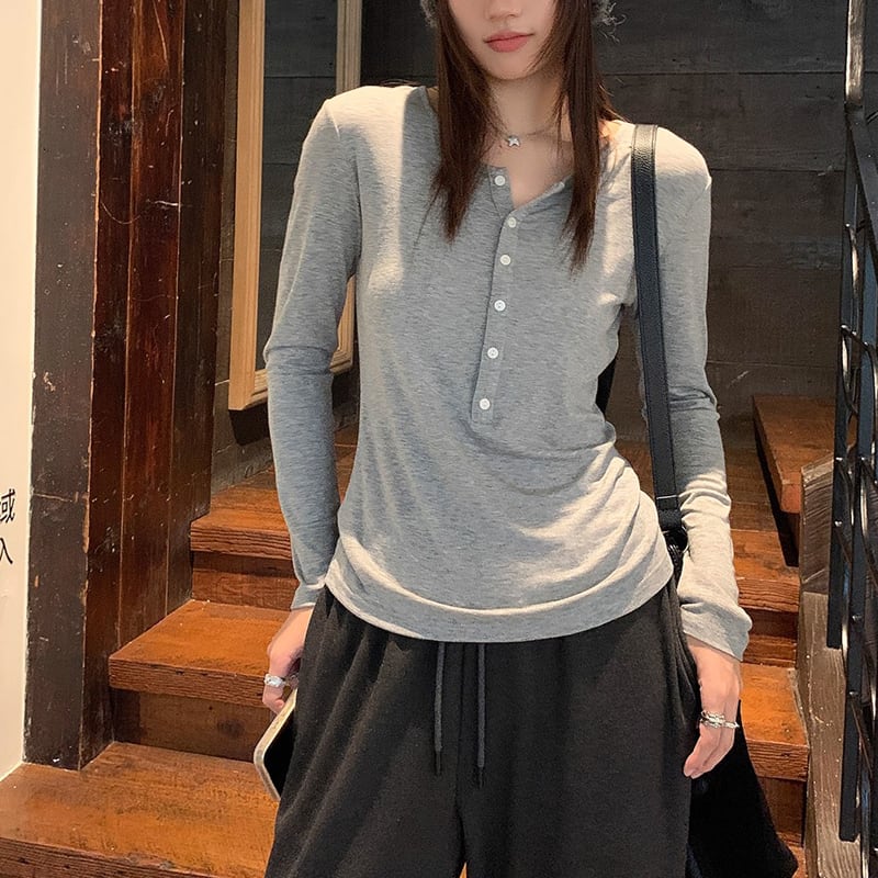 ヘンリーネック 長袖 Tシャツ 4color ATO0016