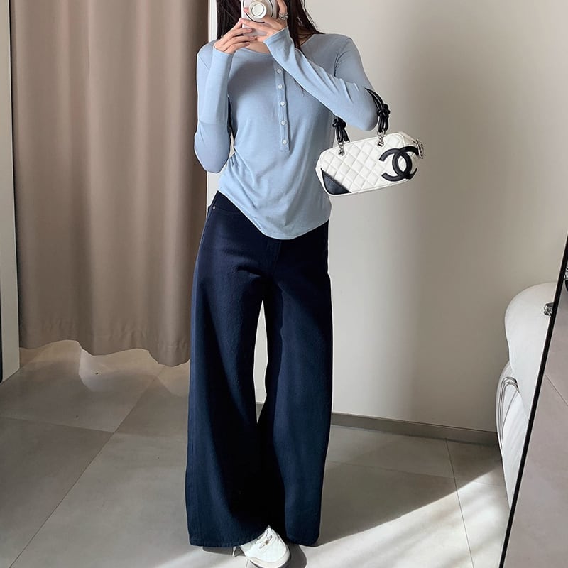 ボタンデザインがさりげないアクセントになり、おしゃれ度を上げてくれます。