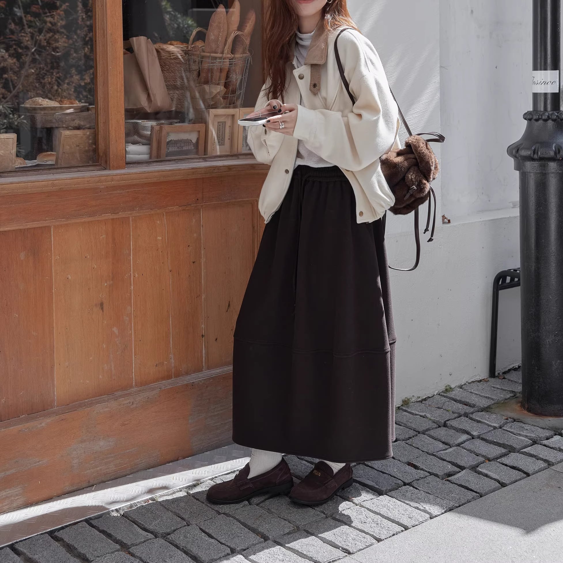 カジュアルながらも上品な印象を与え、普段のコーディネートに取り入れやすい一枚。