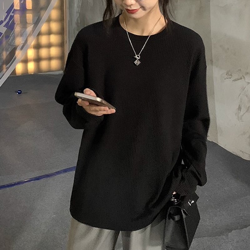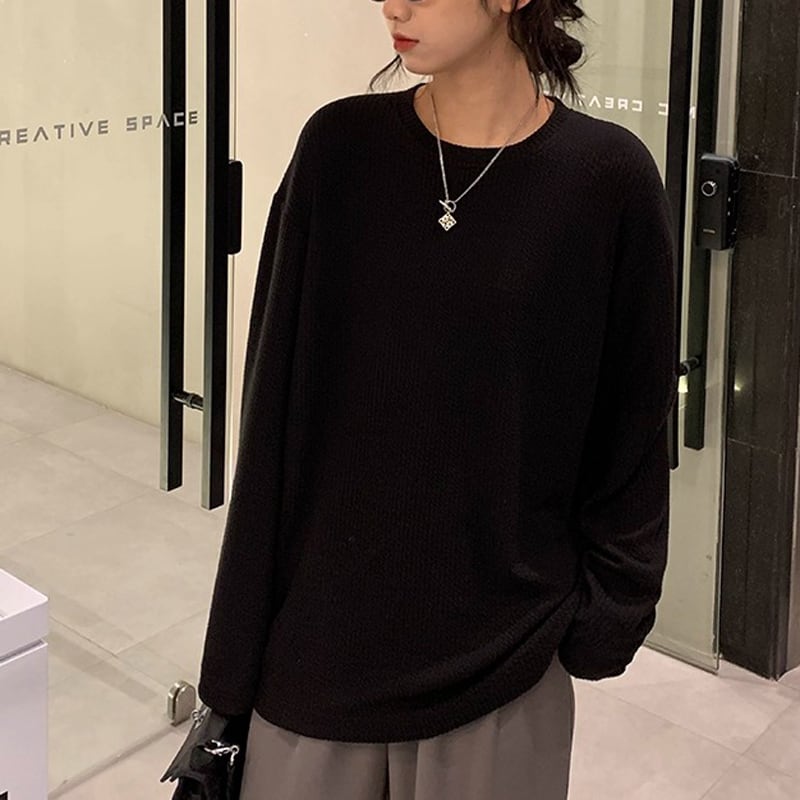 長袖 ゆったり 無地 プルオーバー カットソー 3color ATO0017