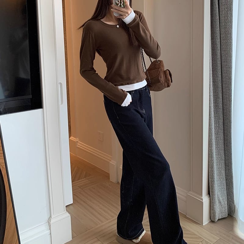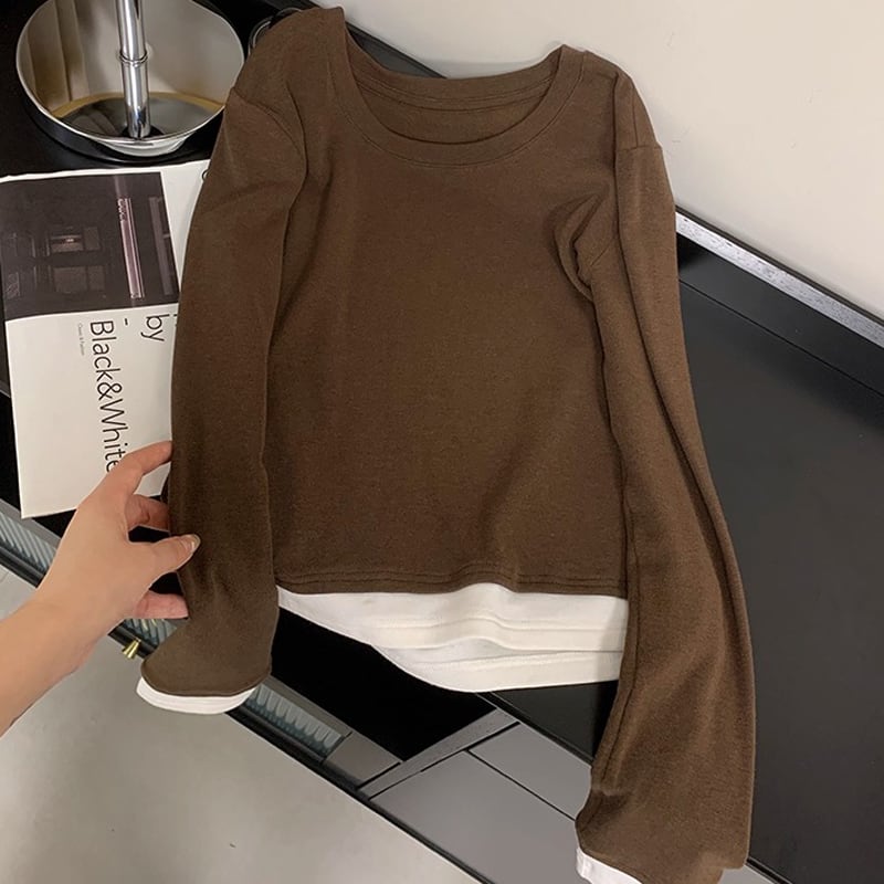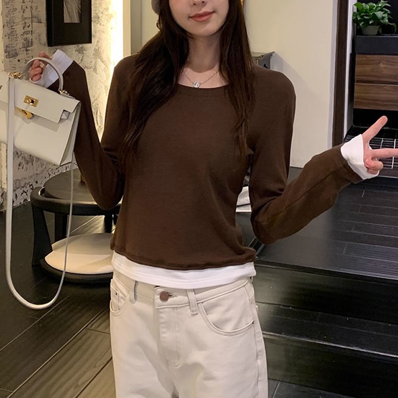 レイヤード風 長袖 クルーネック カットソー 2color ATO0020