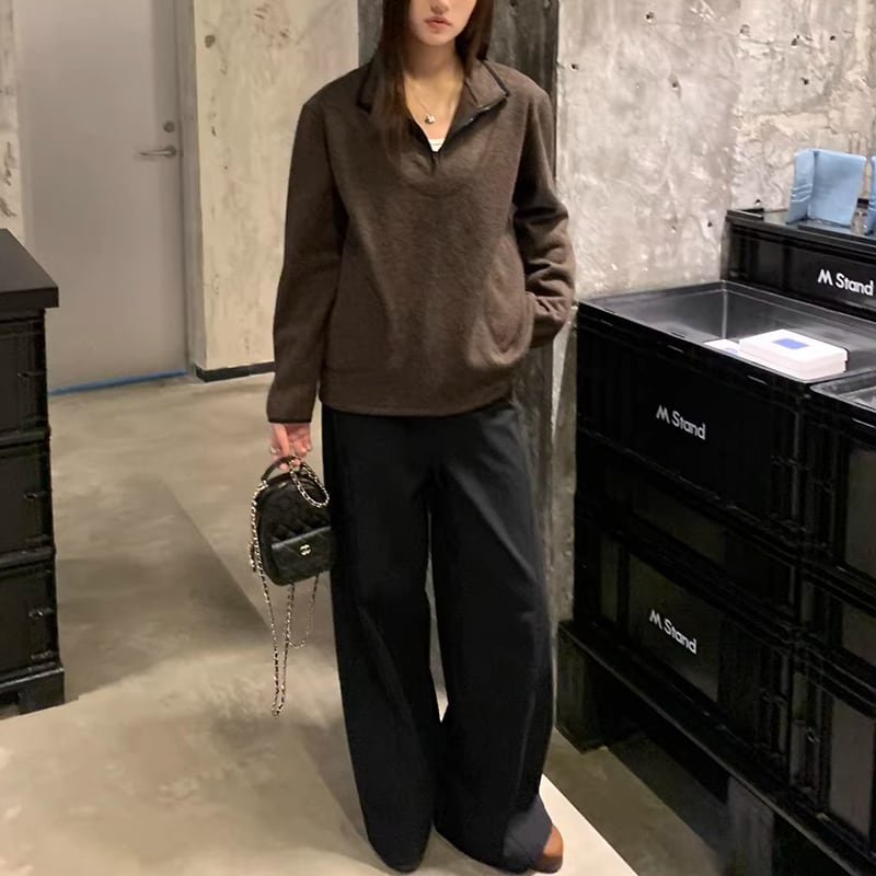 ハーフジップ 長袖 腰丈 プルオーバー 2color ATO0030