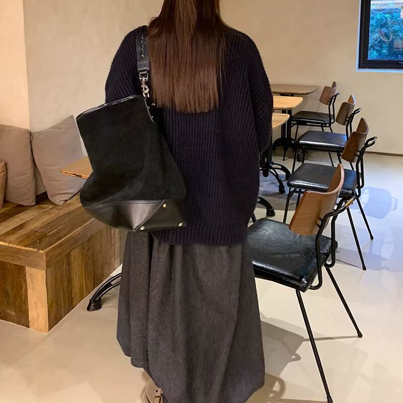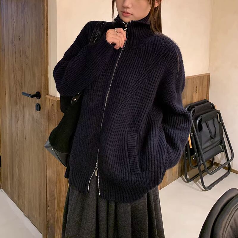 ジップアップ オーバーサイズ 長袖 ニットカーディガン 3color ATO0036