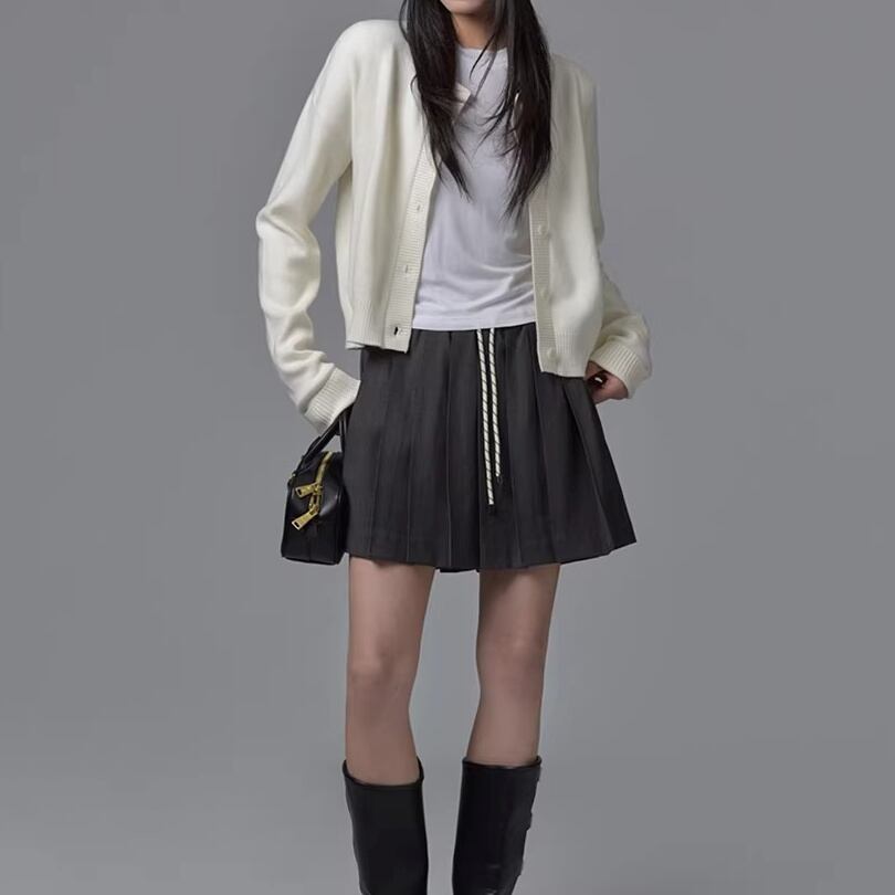 クロップド丈 長袖 ボタンフロント ニットカーディガン 2color ATO0072
