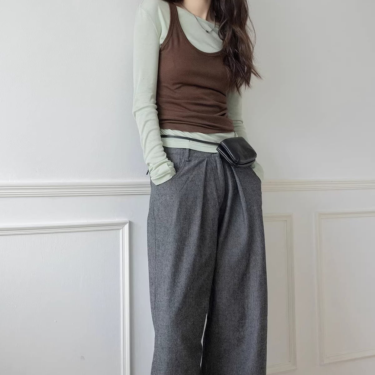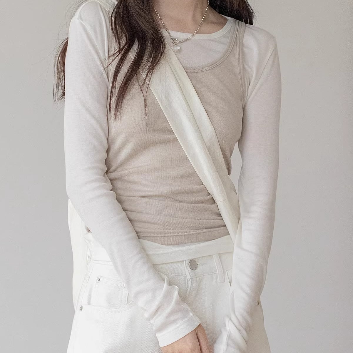 ノースリーブ ベスト 長袖Tシャツ プリーツ 6color ATO0088