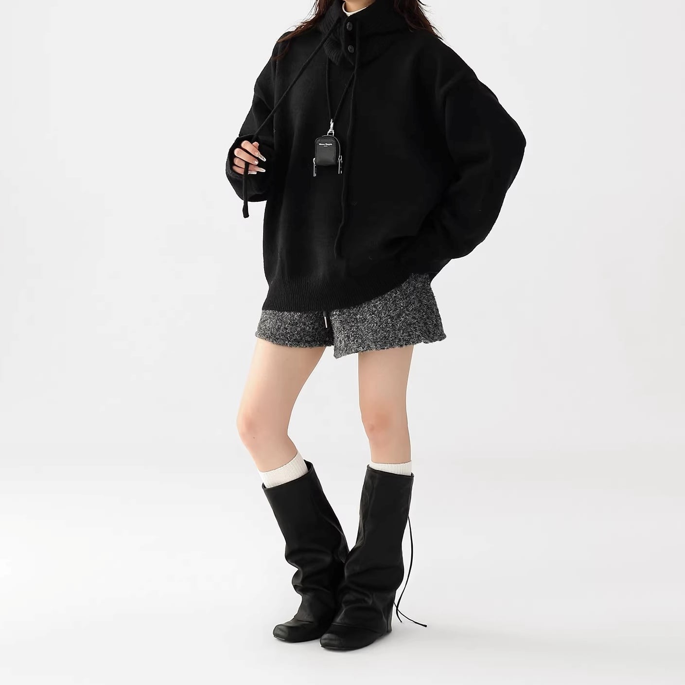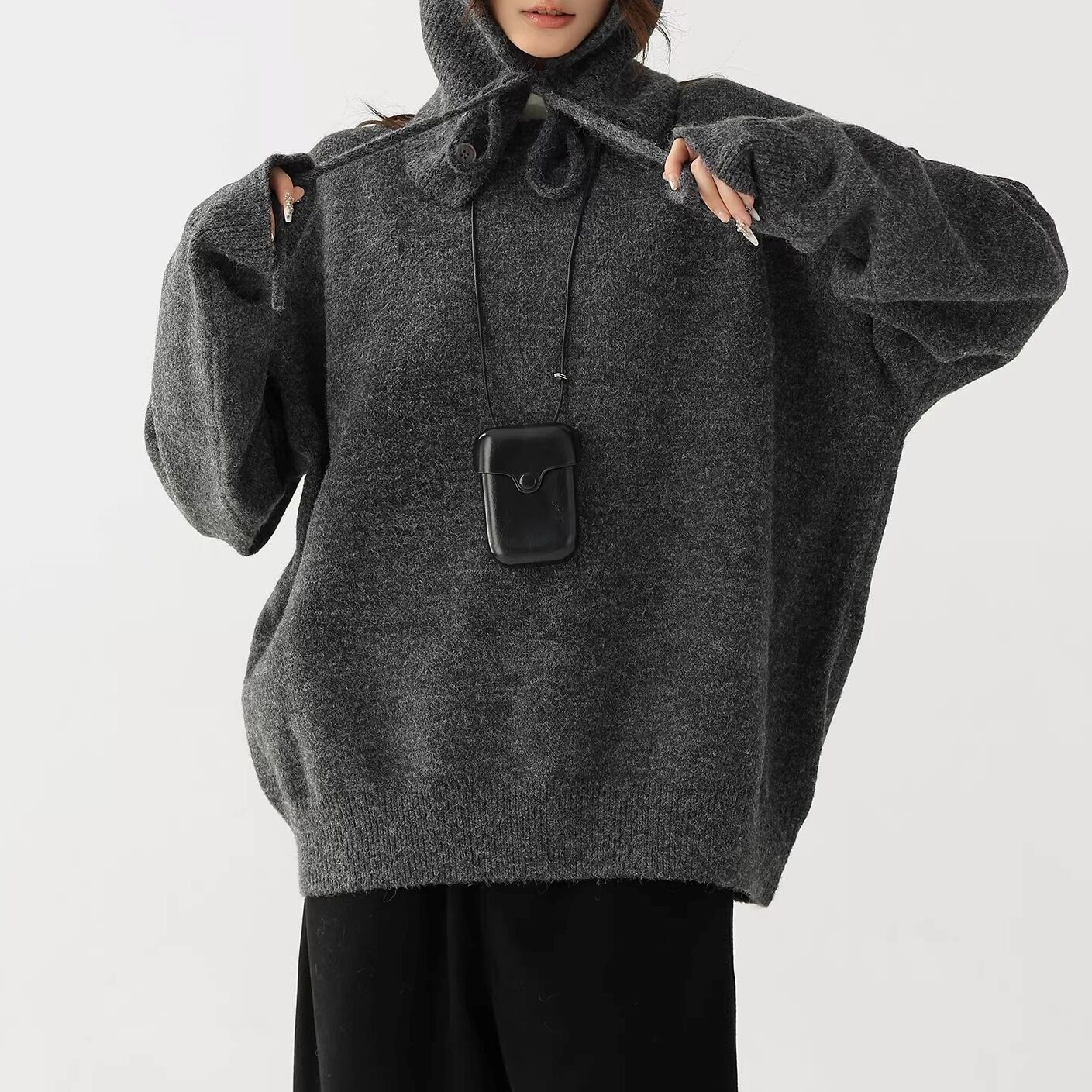 長袖 オーバーサイズ ドロップショルダー ニット 取り外し可能なカラットハット 3color ATO0101