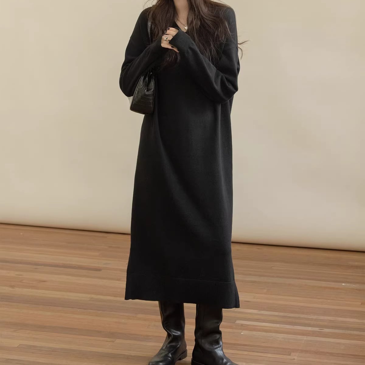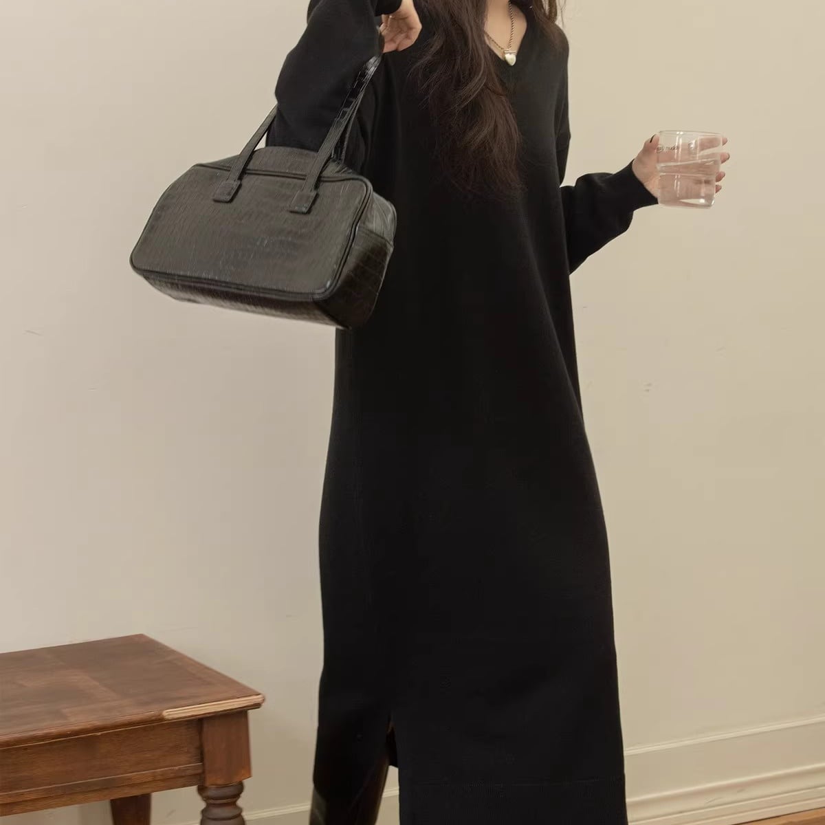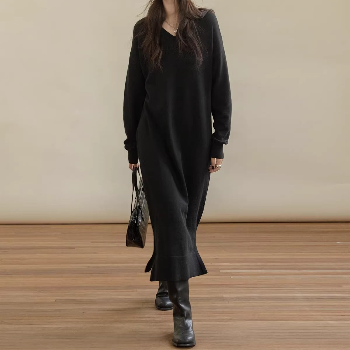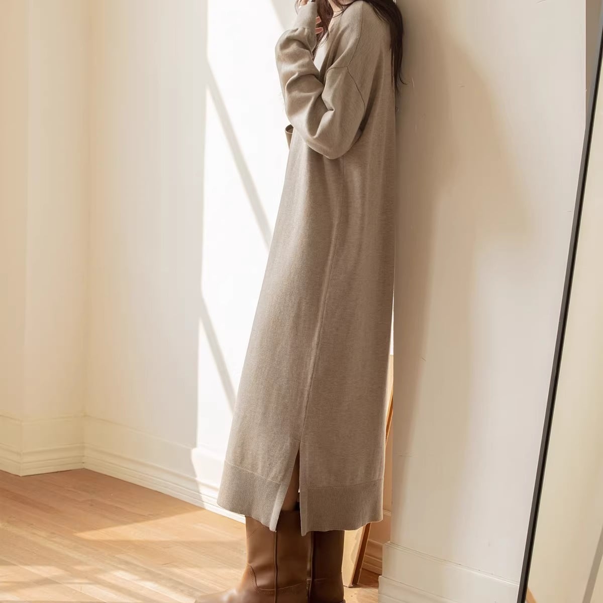 Vネックスリットニットワンピース 3color AON0003