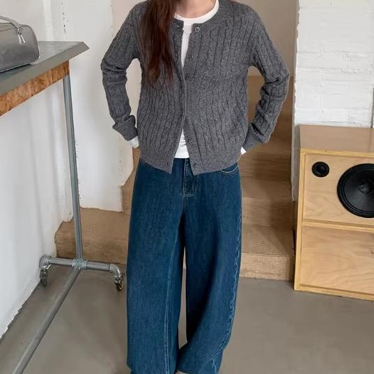 ケーブル編み クロップド 長袖 カーディガン 1color ATO0122