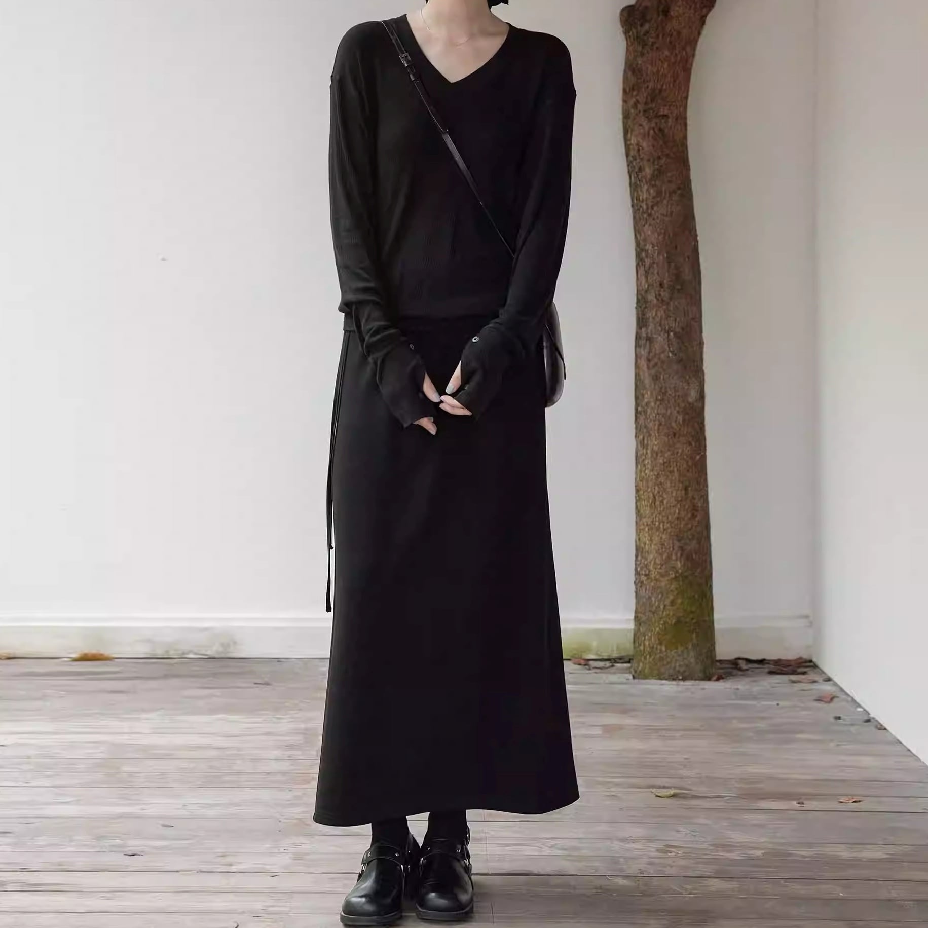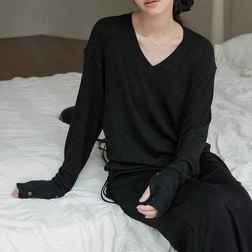 Vネック 長袖 リブ編み カットソー 3color ATO0136