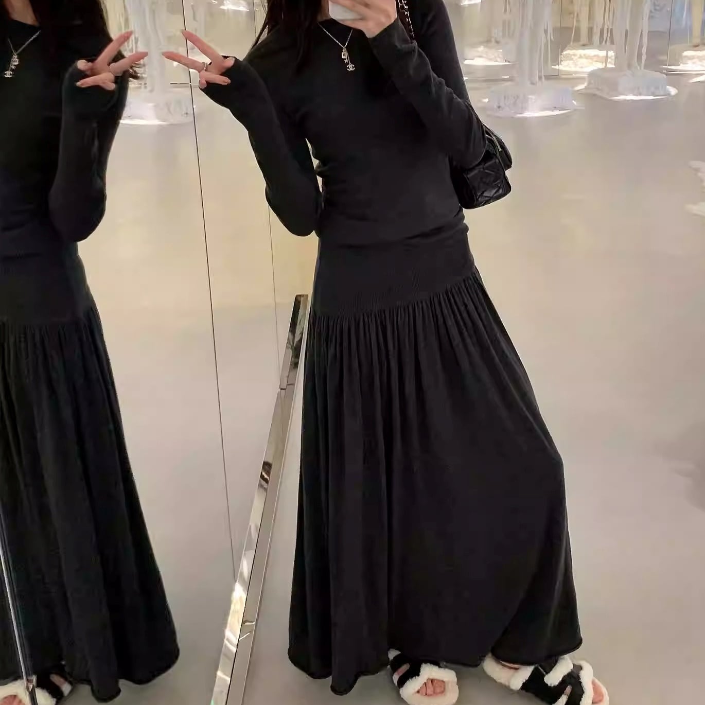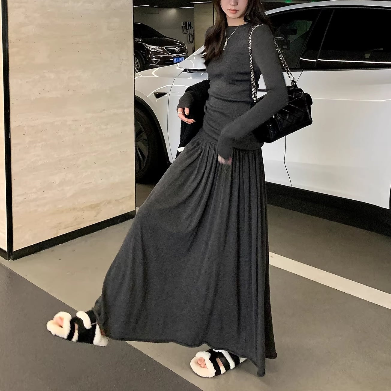 長袖 マキシ丈 ドレープ ロングワンピース 4color ATO0150