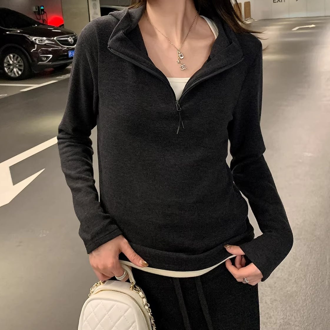 ハーフジップ 長袖 ヒップ丈 スウェットシャツ 4color ATO0152