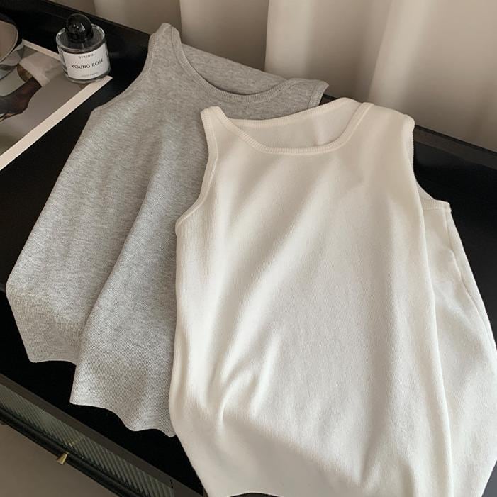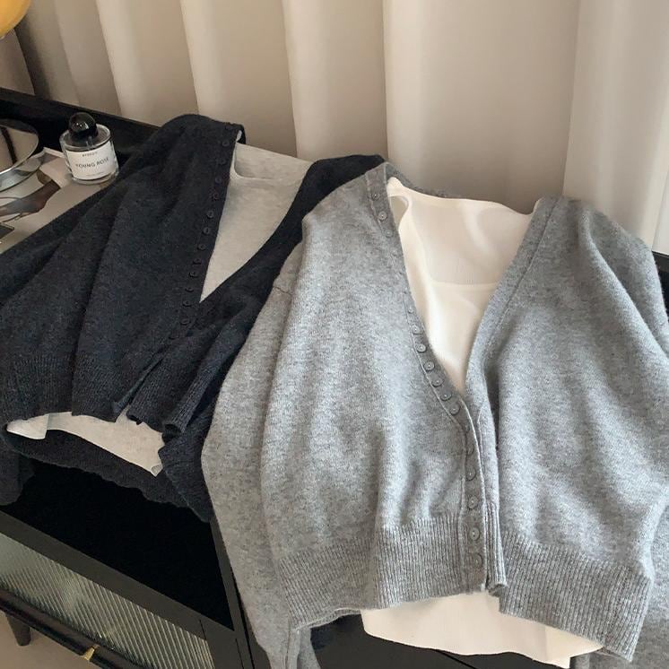 ボタンフロント クロップド 長袖 ニットカーディガン&タンクトップ 4color ATO0156