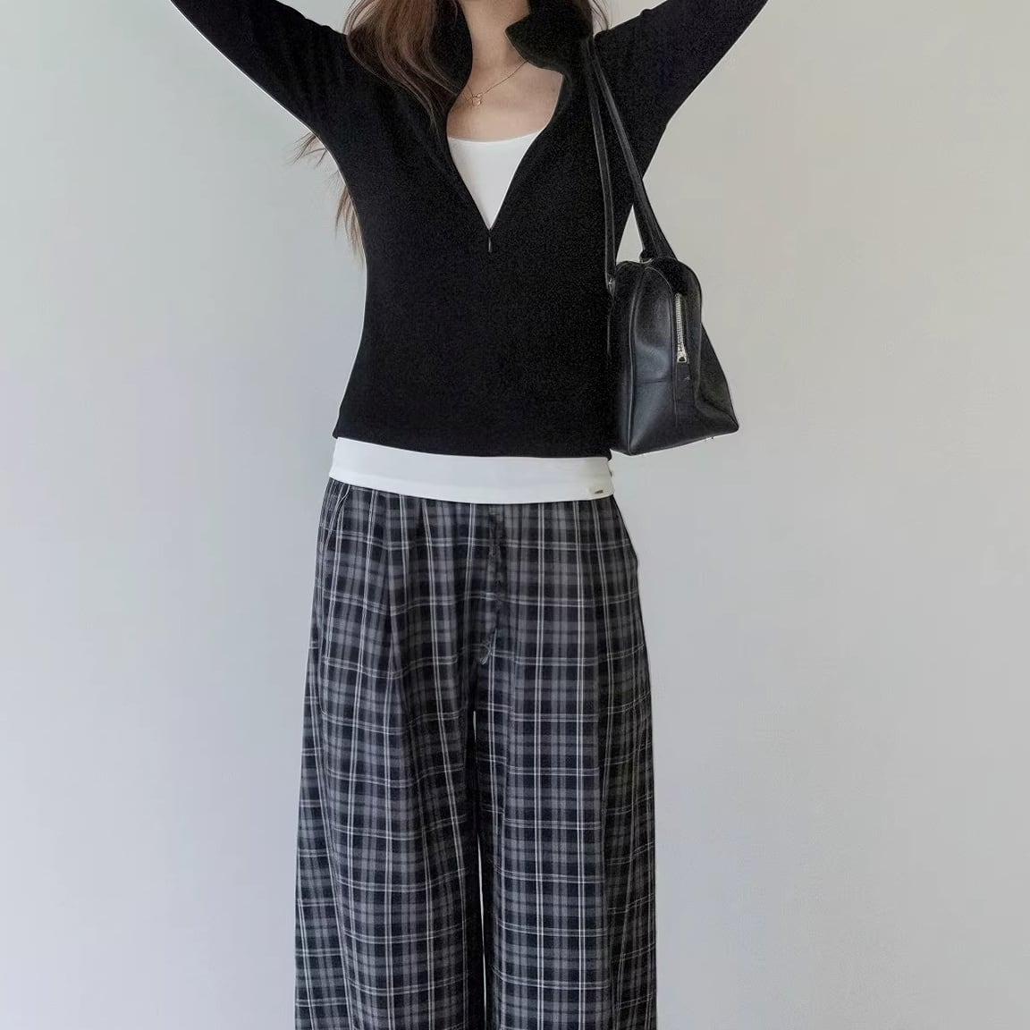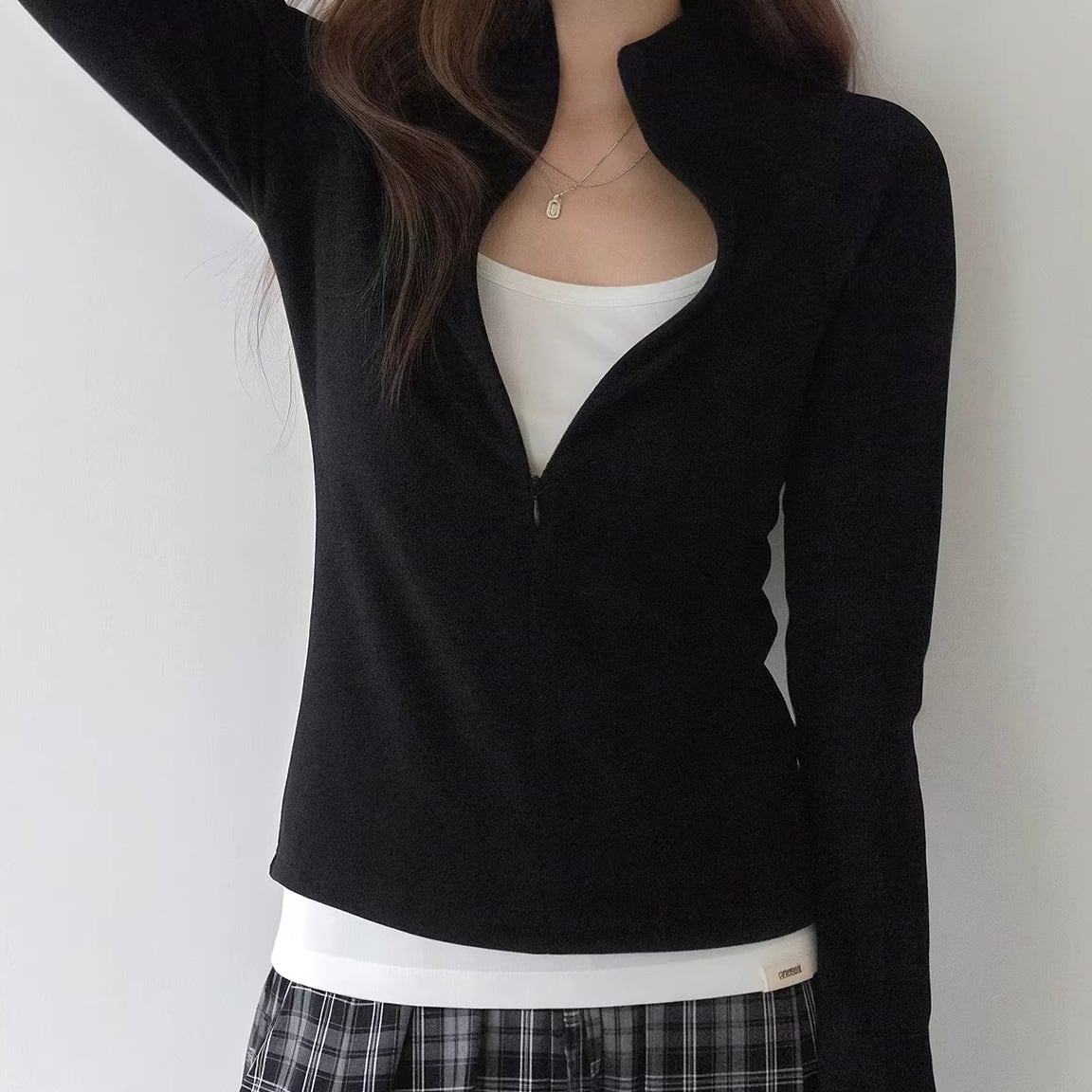 ハーフジップ 長袖 クロップド丈 カットソー 2color ATO0167