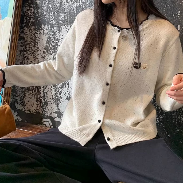 ボタンフロント 長袖 ショート丈 カーディガン 2color ATO0187