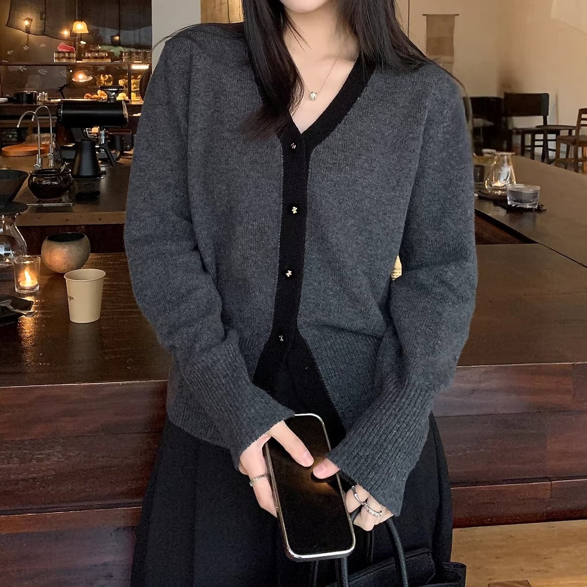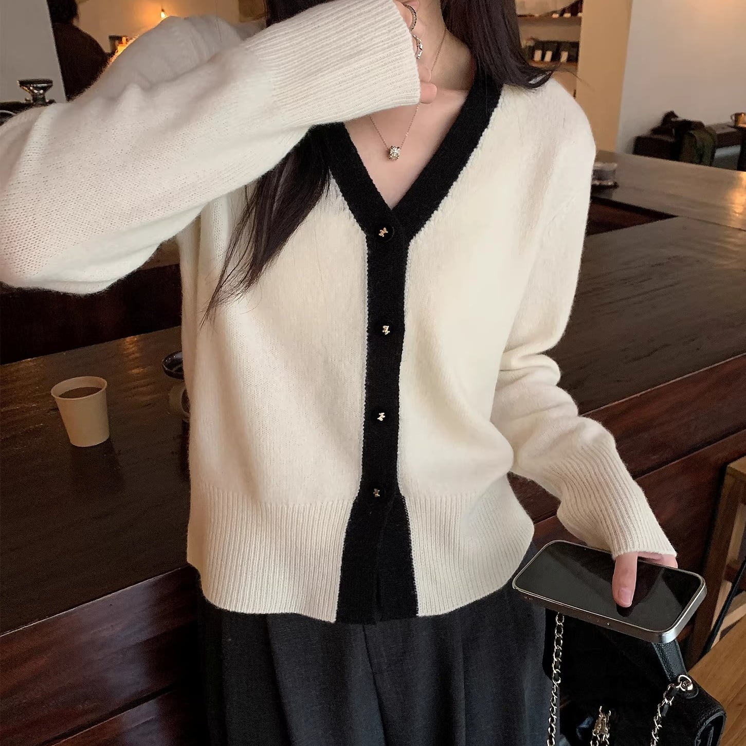 Vネック ボタンフロント 長袖 カーディガン 3color ATO0191