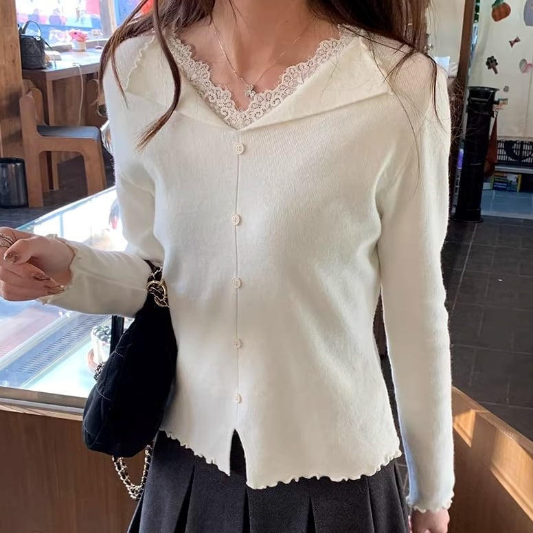長袖 オープンカラー ニット カーディガン 3color ATO0192