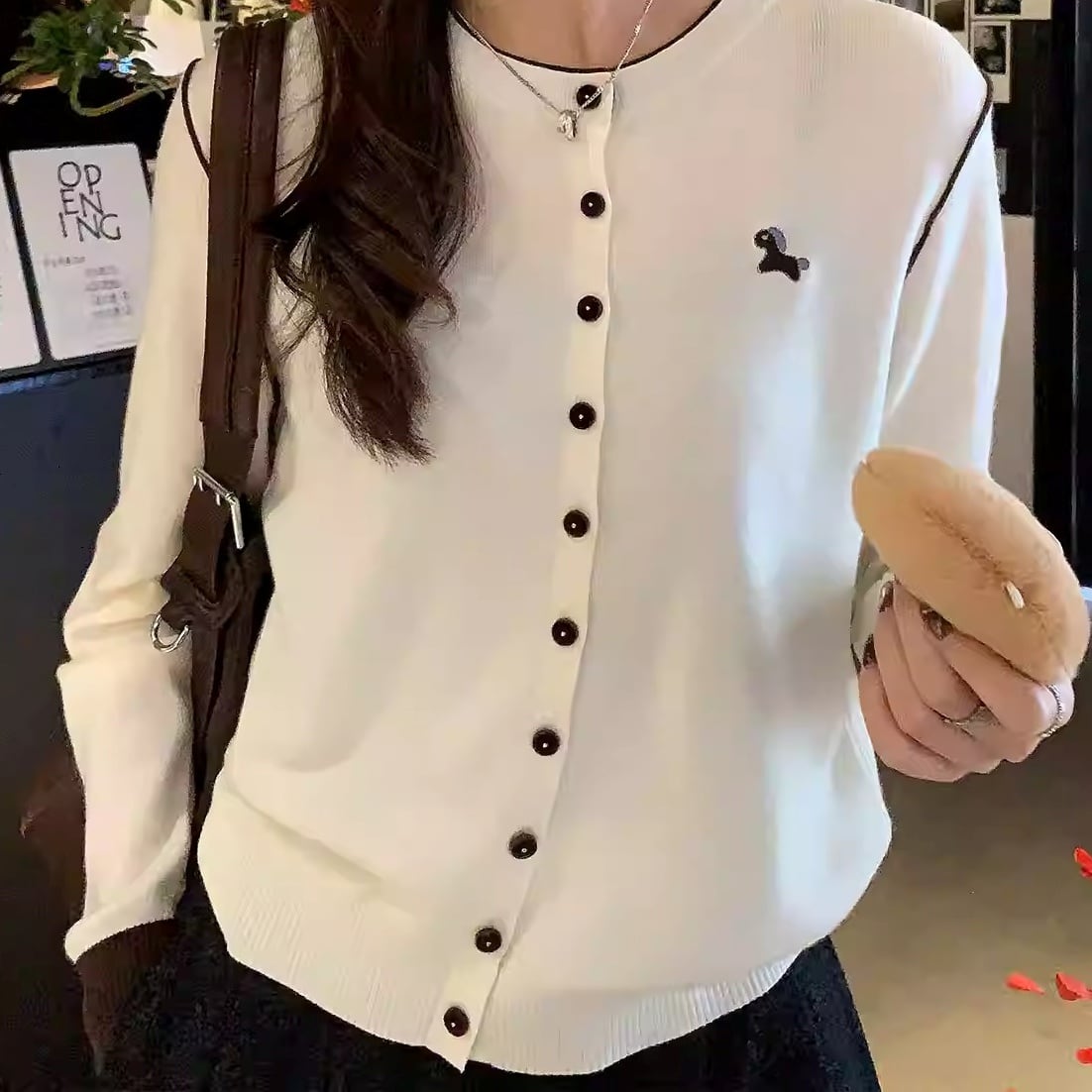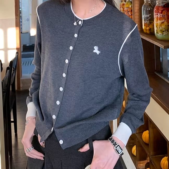 ボタンフロント 長袖 クロップド カーディガン 2color ATO0194
