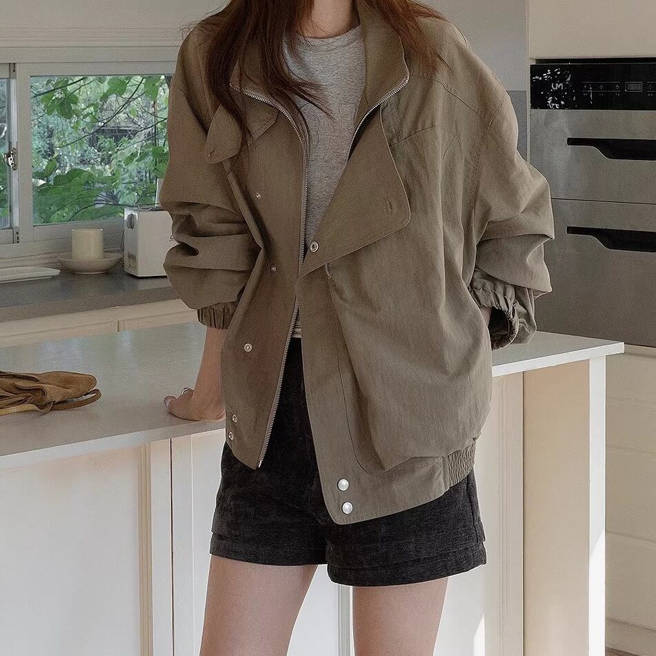 ボタンフロント ヒップ丈 長袖 ジャケット 2color AOJ0046