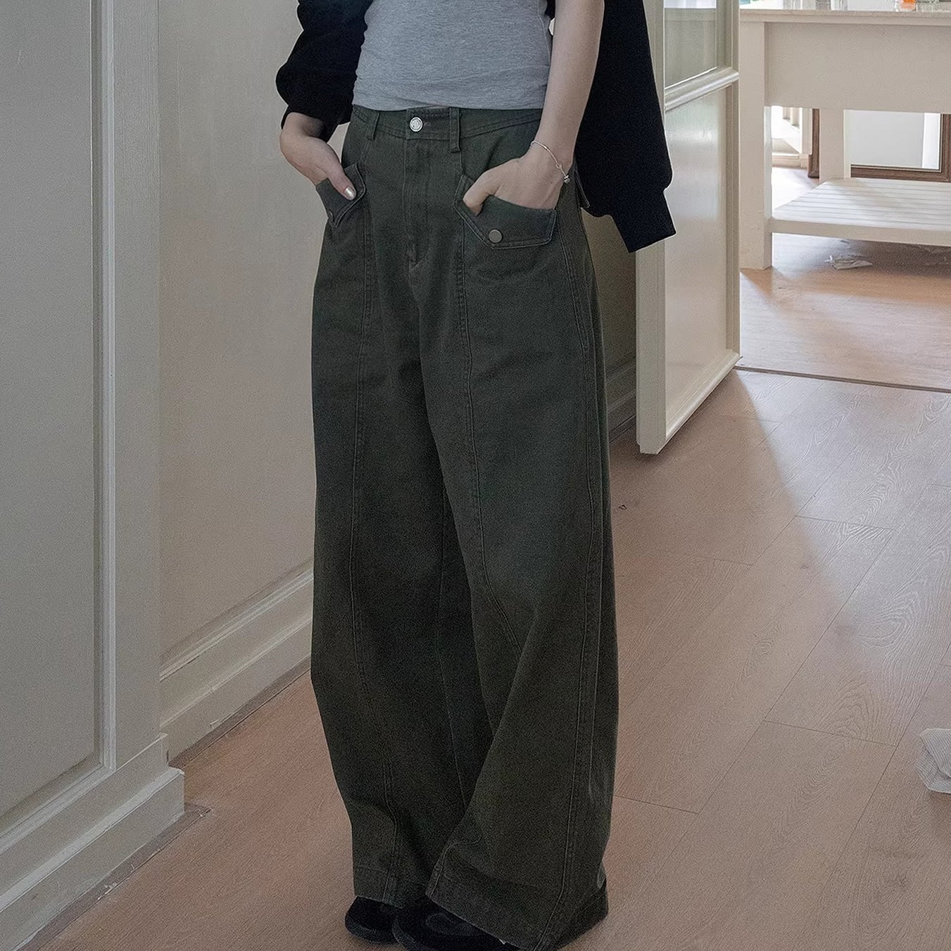 ワイド ハイウエスト カーブシルエット パンツ 2color APA0079