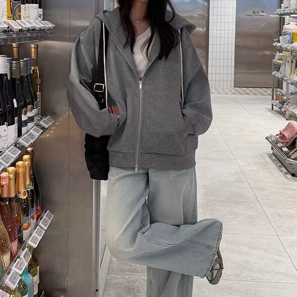 ジップアップ オーバーサイズ 長袖 スウェット パーカー 2color AOJ0050