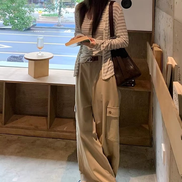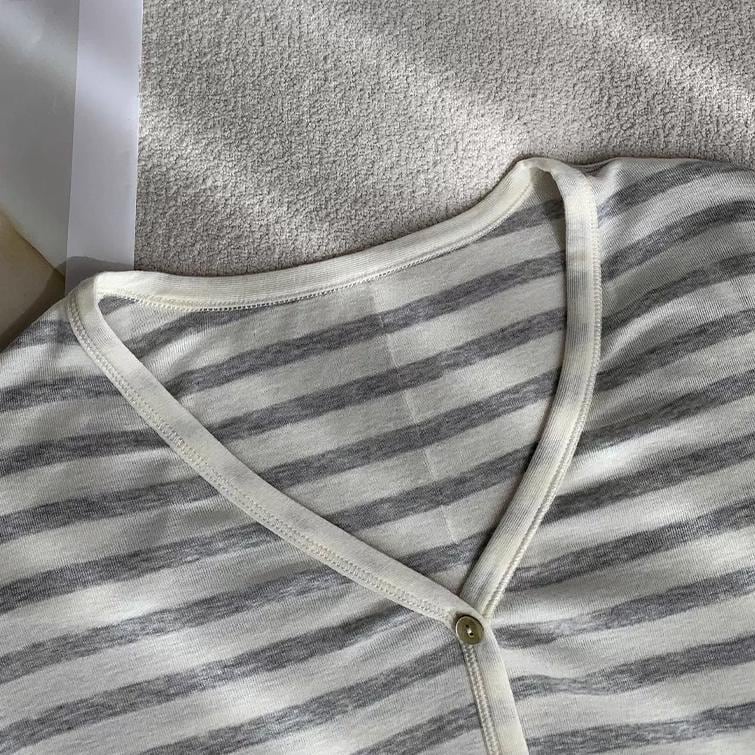 ボタンフロント 長袖 ボーダー柄 カーディガン 1color ATO0205