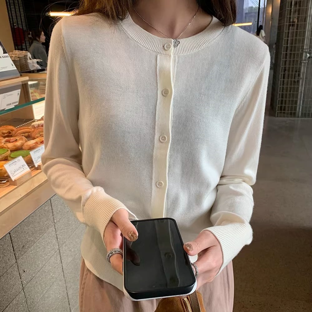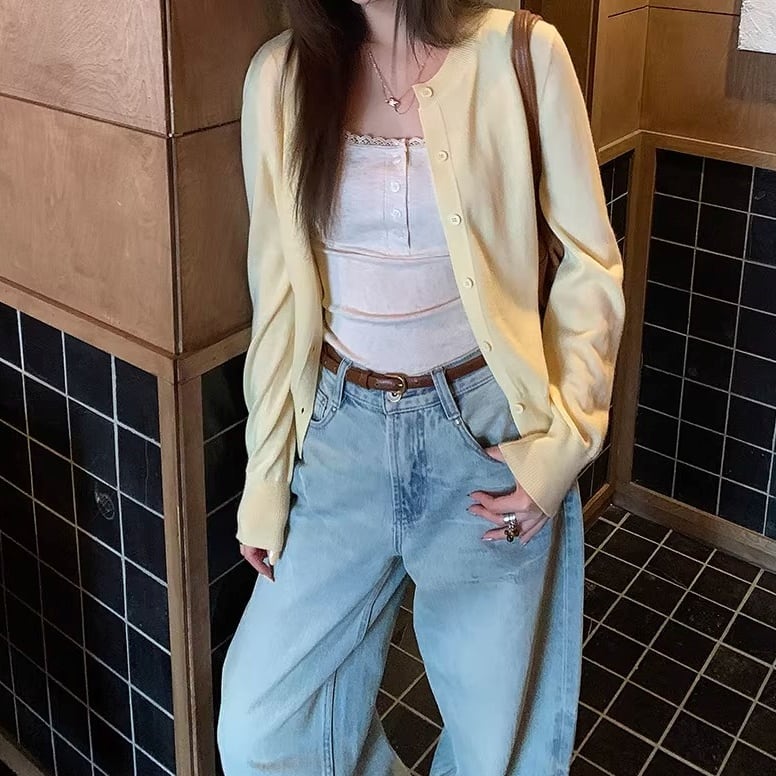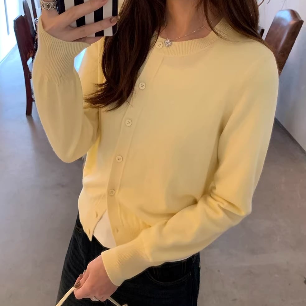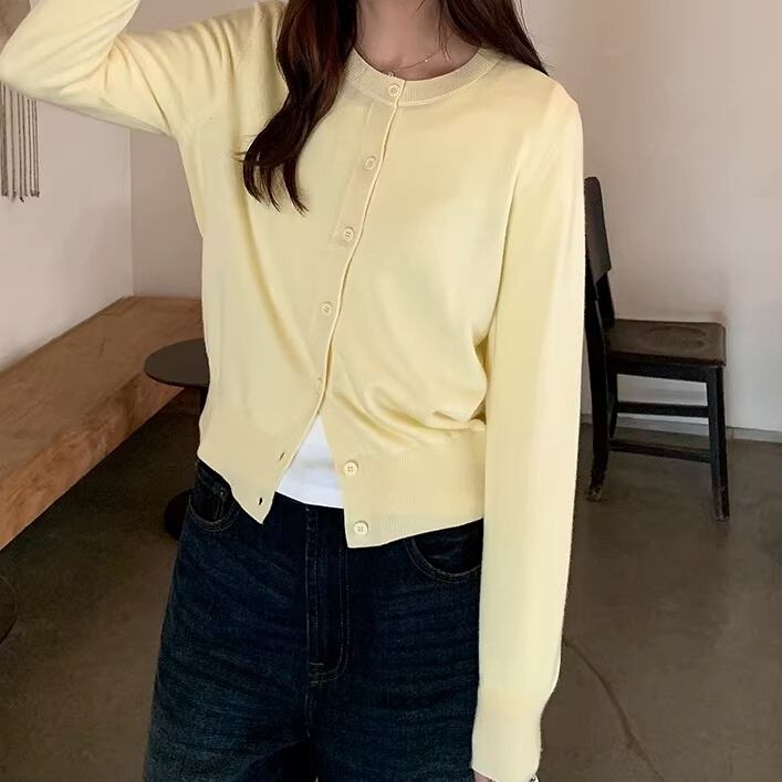 ボタンフロント 長袖 ショート丈 ニットカーディガン 3color ATO0207