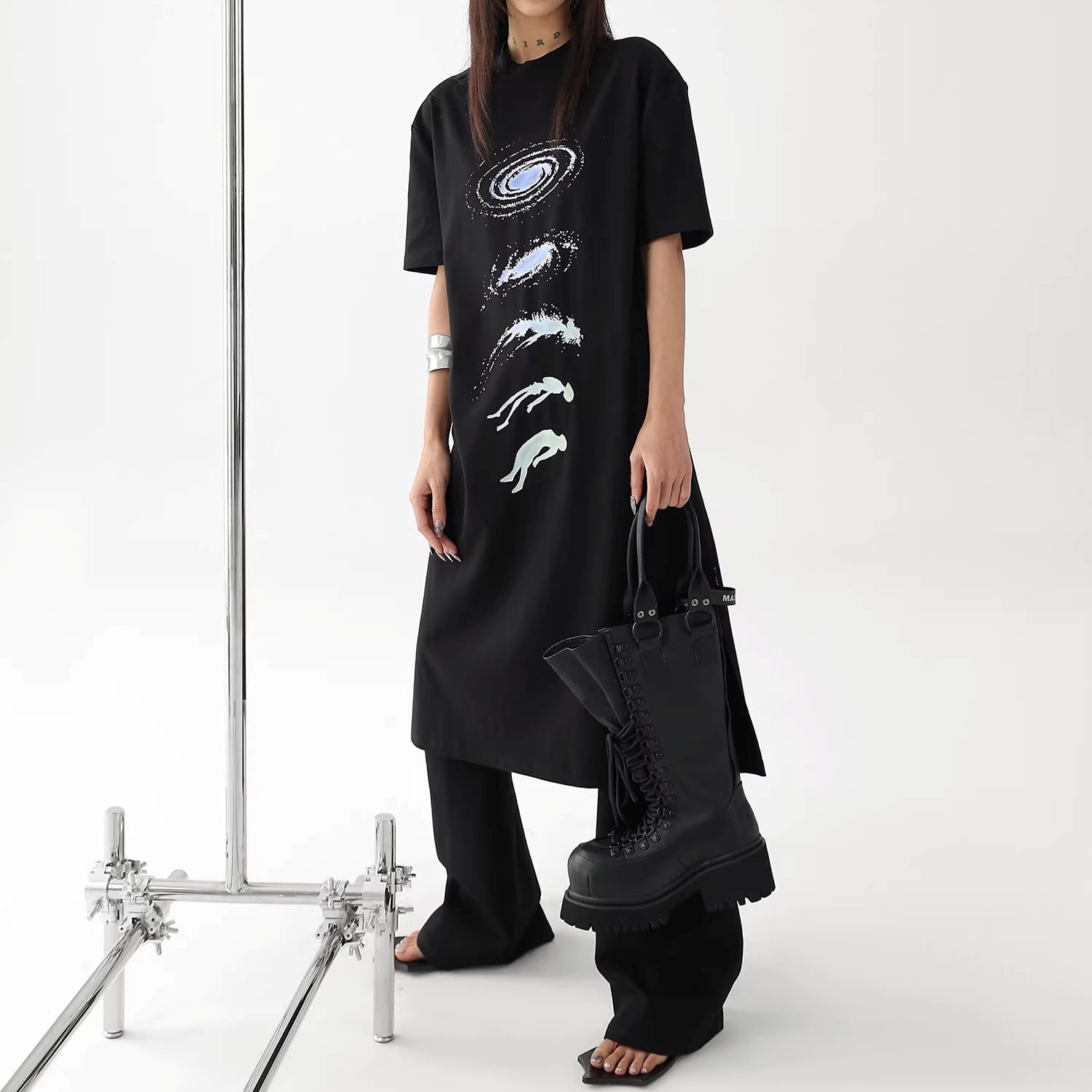 半袖 ミディ丈 サイドスリット Tシャツワンピース 3color ATO0216