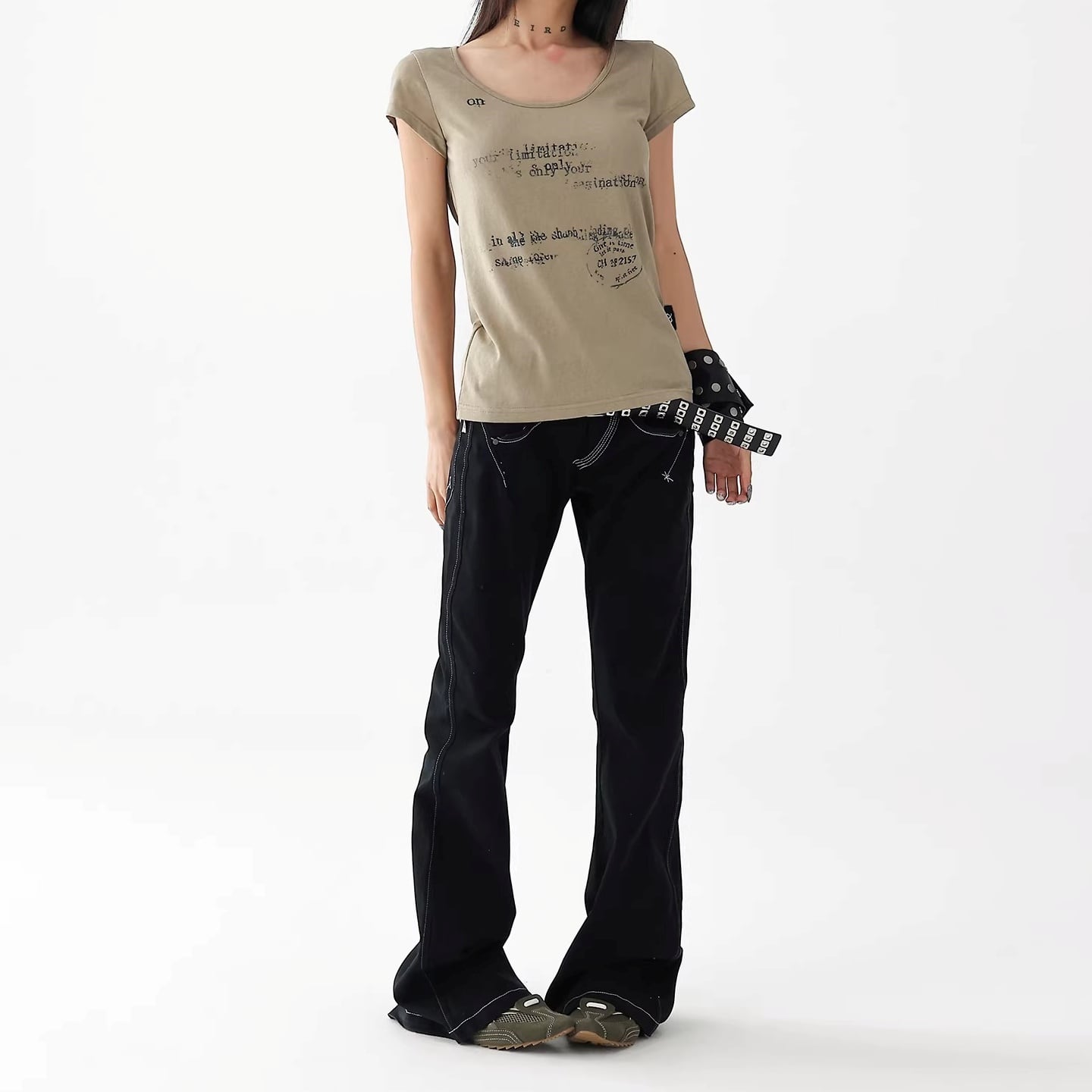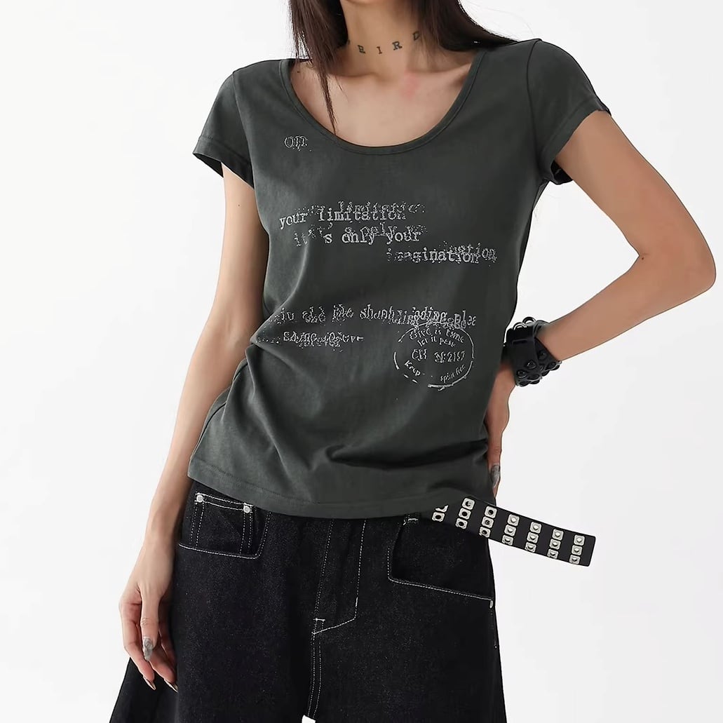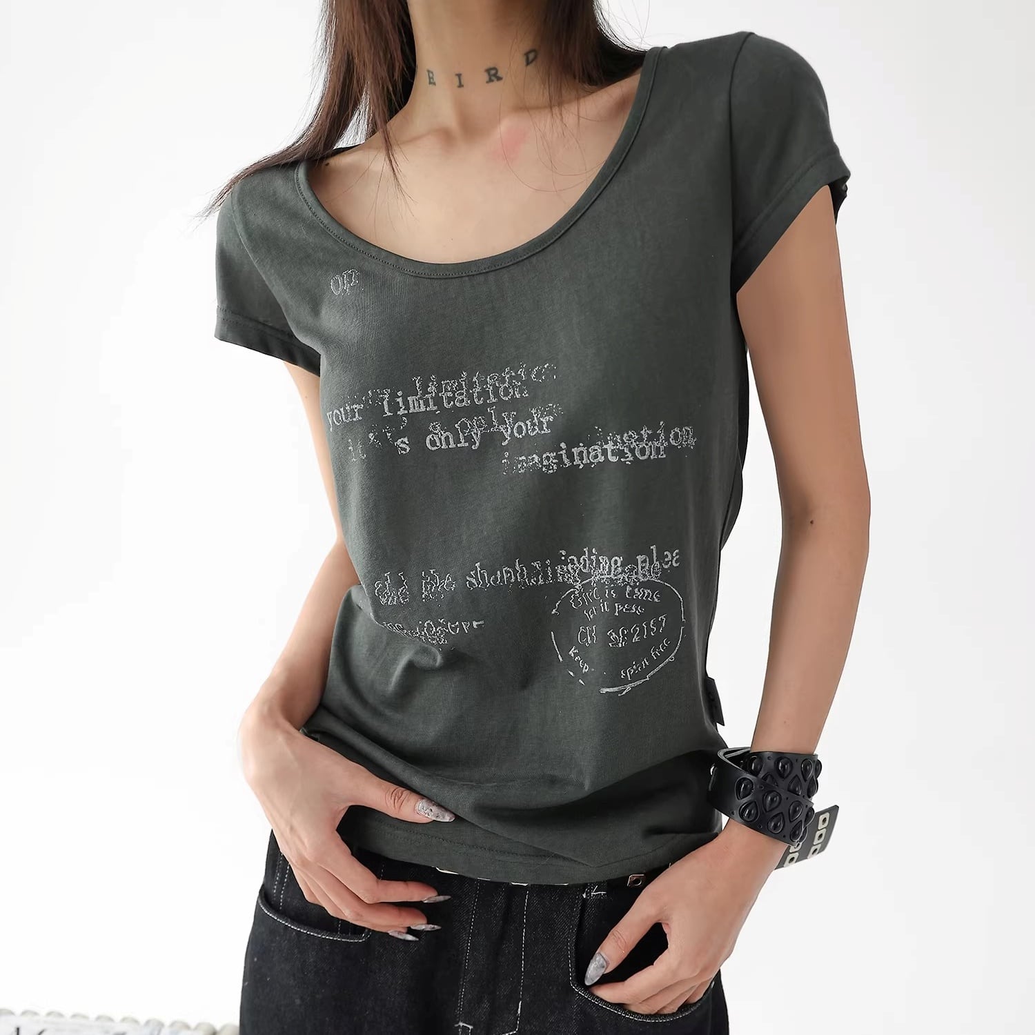 半袖 Uネック プリント スリム Tシャツ 2color ATO0221