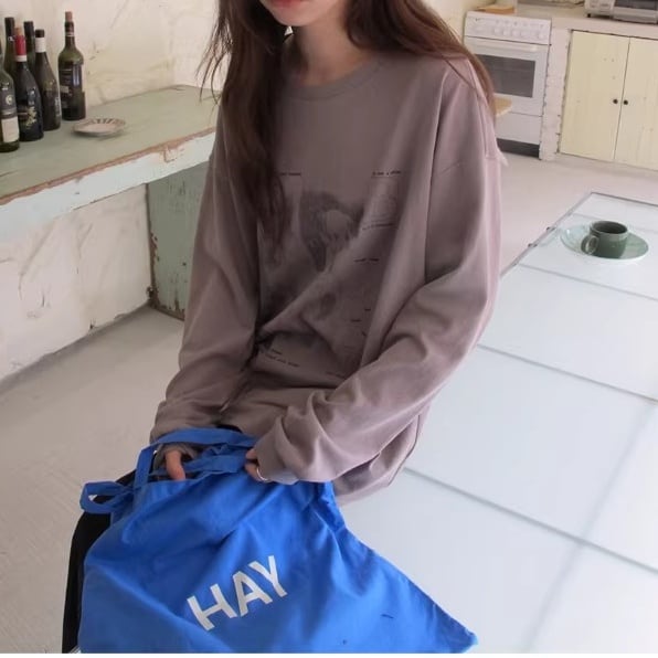 プリント 長袖 オーバーサイズ ドロップショルダー Tシャツ 1color ATO0232