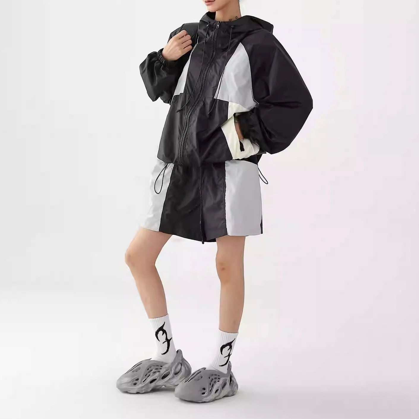 配色切り替え 腰丈 ジップアップ ジャケット&ショートパンツ 2color ASE0007