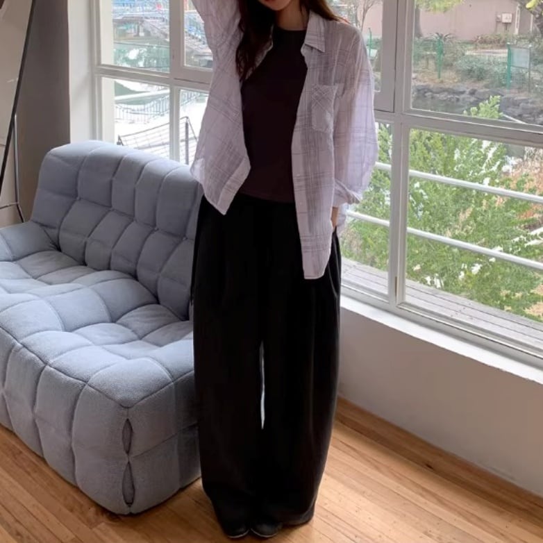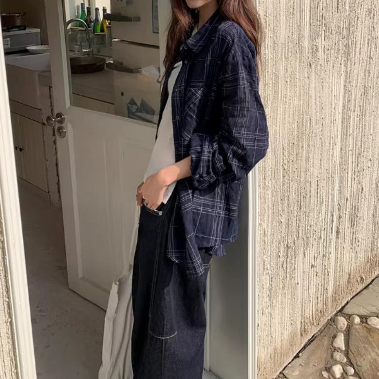 チェック柄 長袖 ヒップ丈 シャツ 2color ATO0234