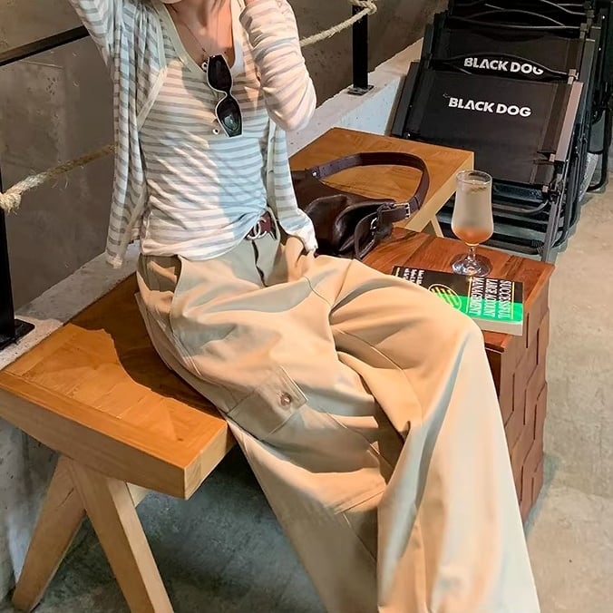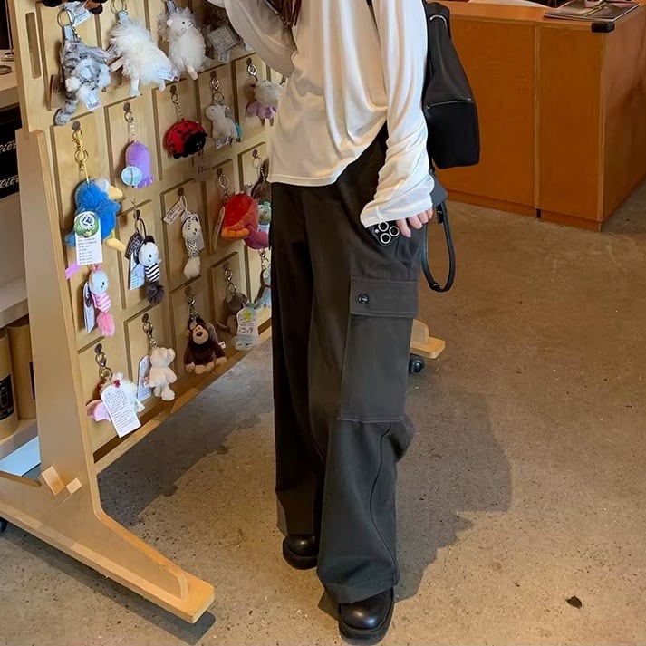 ポケット付き ワイド ストレート ロング丈 パンツ 2color APA0091