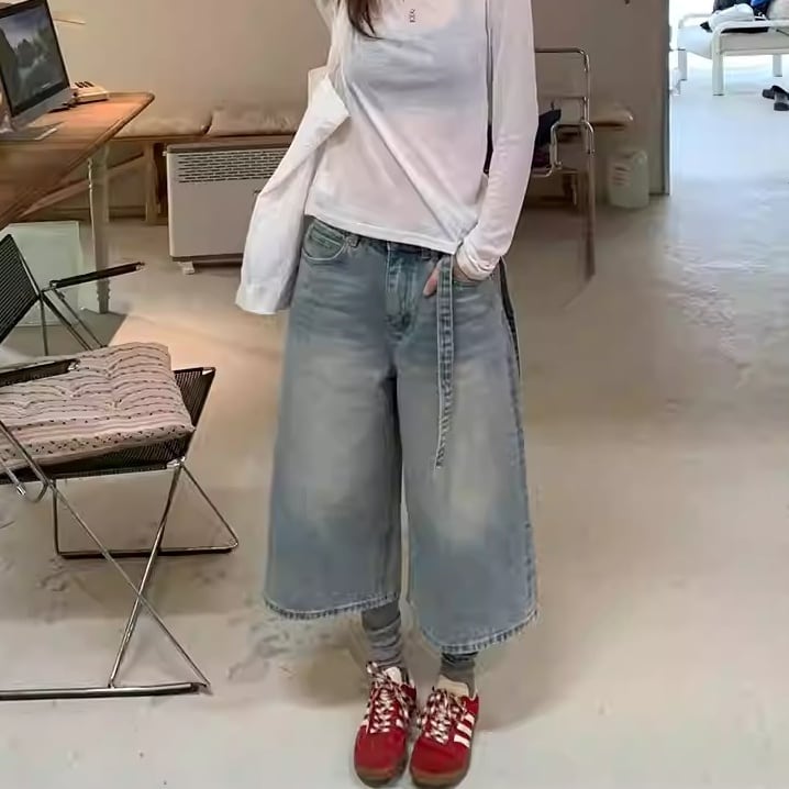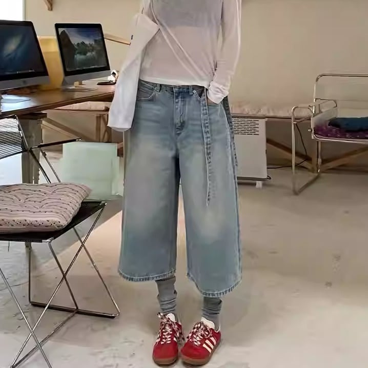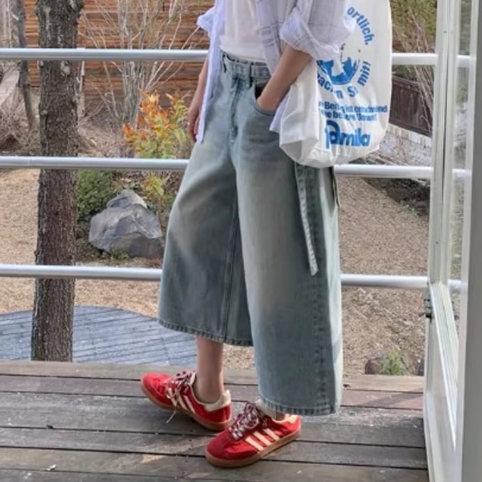 ベルト付き ワイド ミディ丈 キュロット 1color APA0097