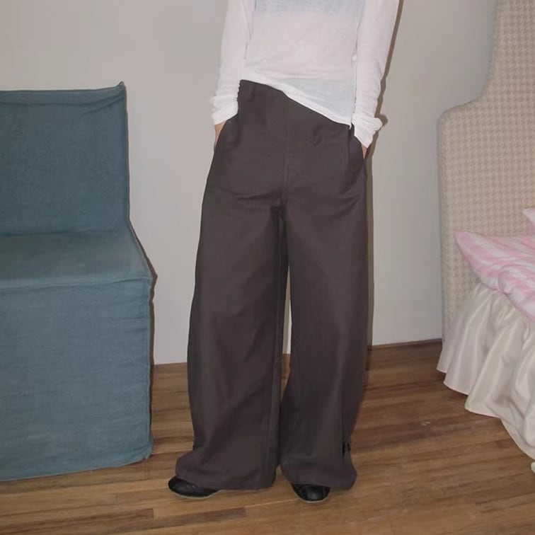 サイドベルト ワイドレッグ フルレングス パンツ 1color APA0099