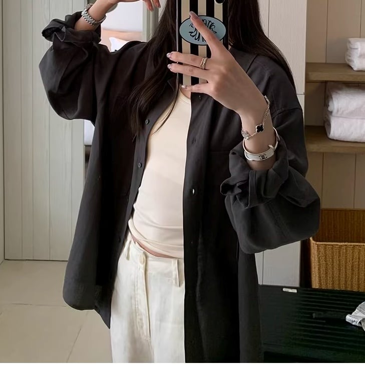 パッチポケット 長袖 オーバーサイズ シャツ 3color ATO0239