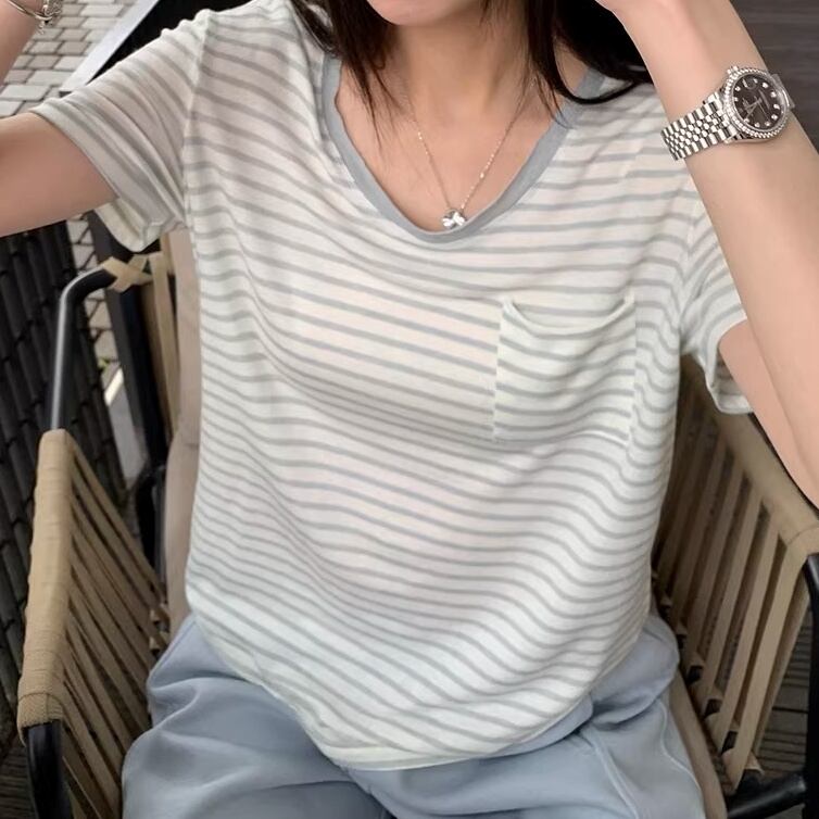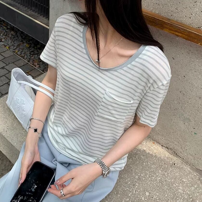 ボーダー 半袖 Uネック Tシャツ 2color ATO0249