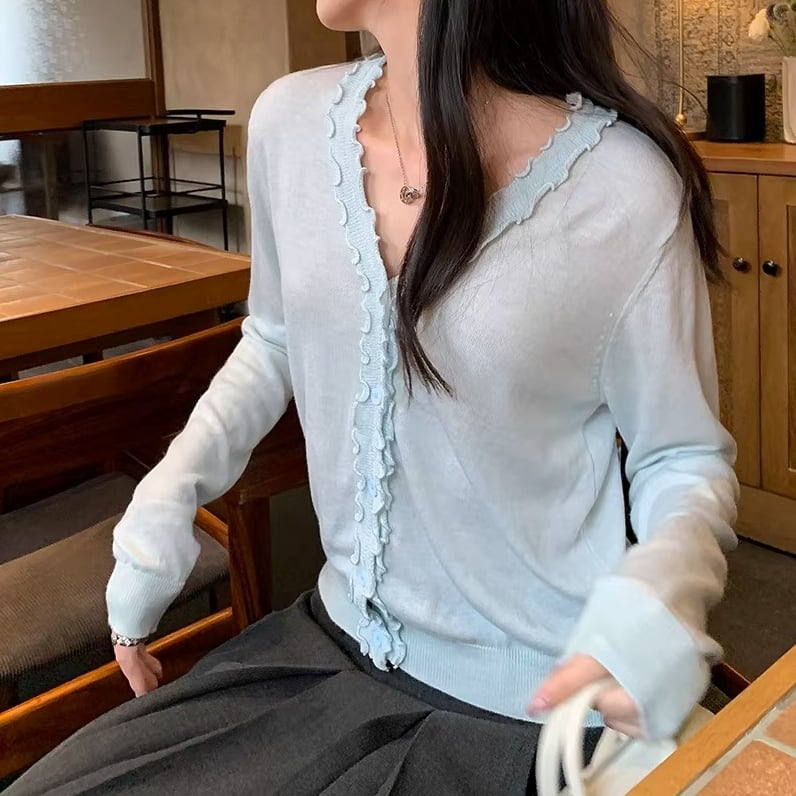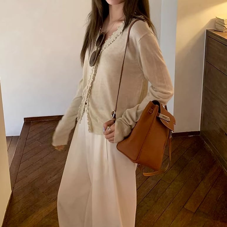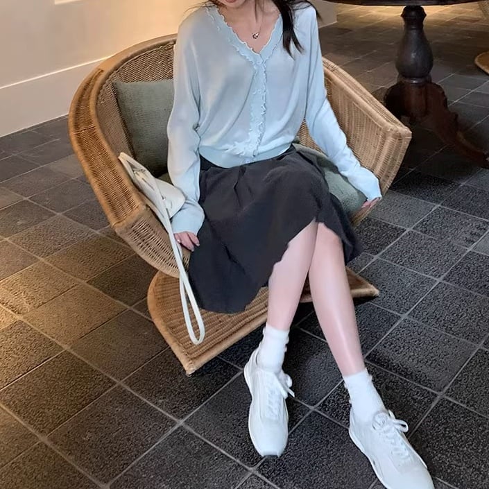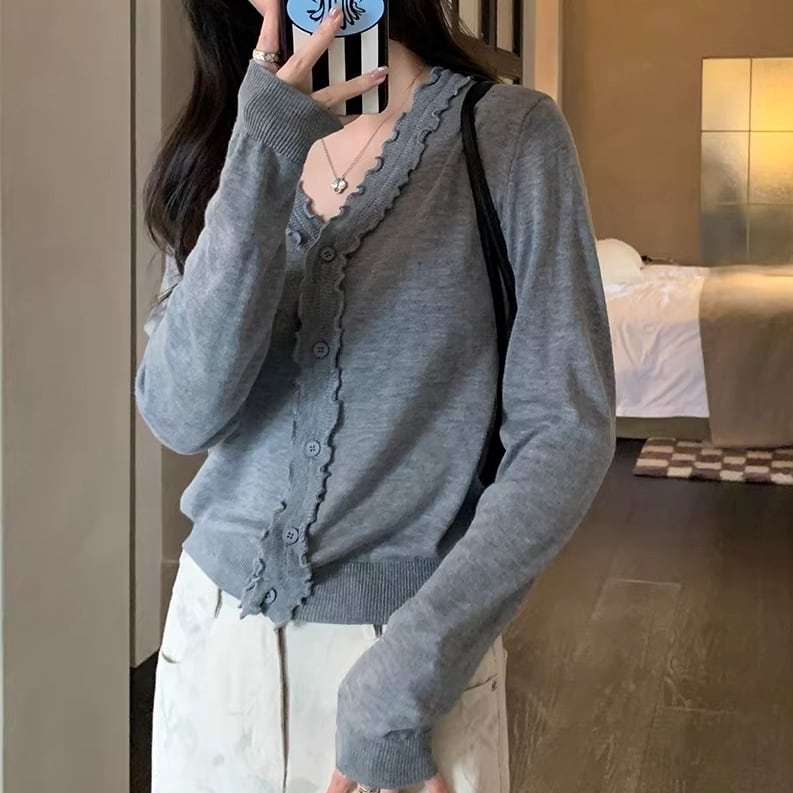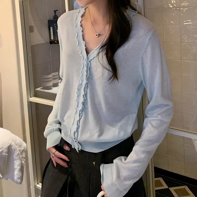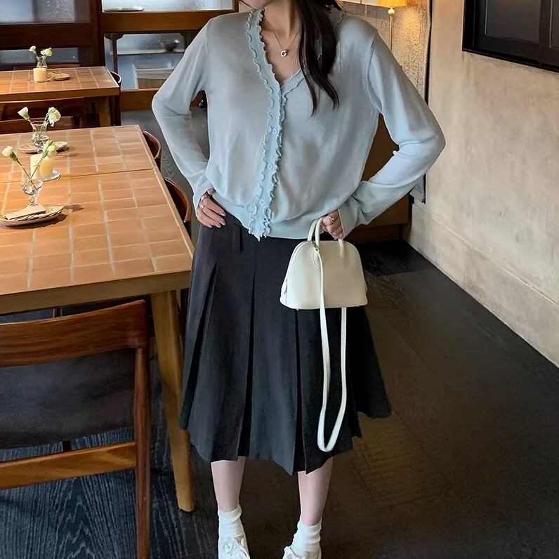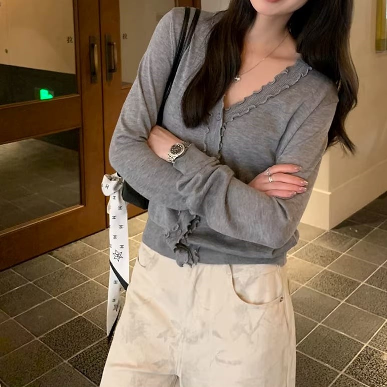 ボタンフロント 長袖 リブ クロップド カーディガン 3color ATO0252