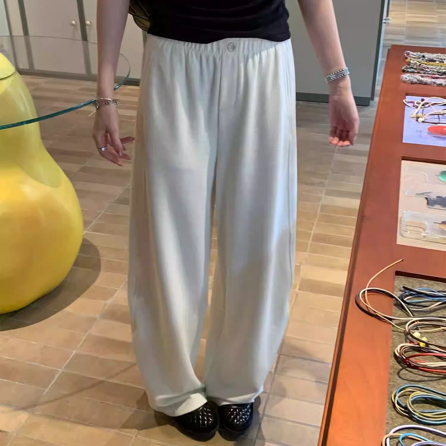 ワンボタン ワイドレッグ フルレングス パンツ 2color APA0106