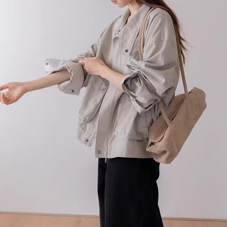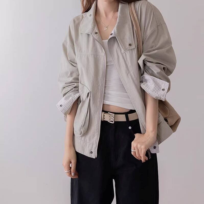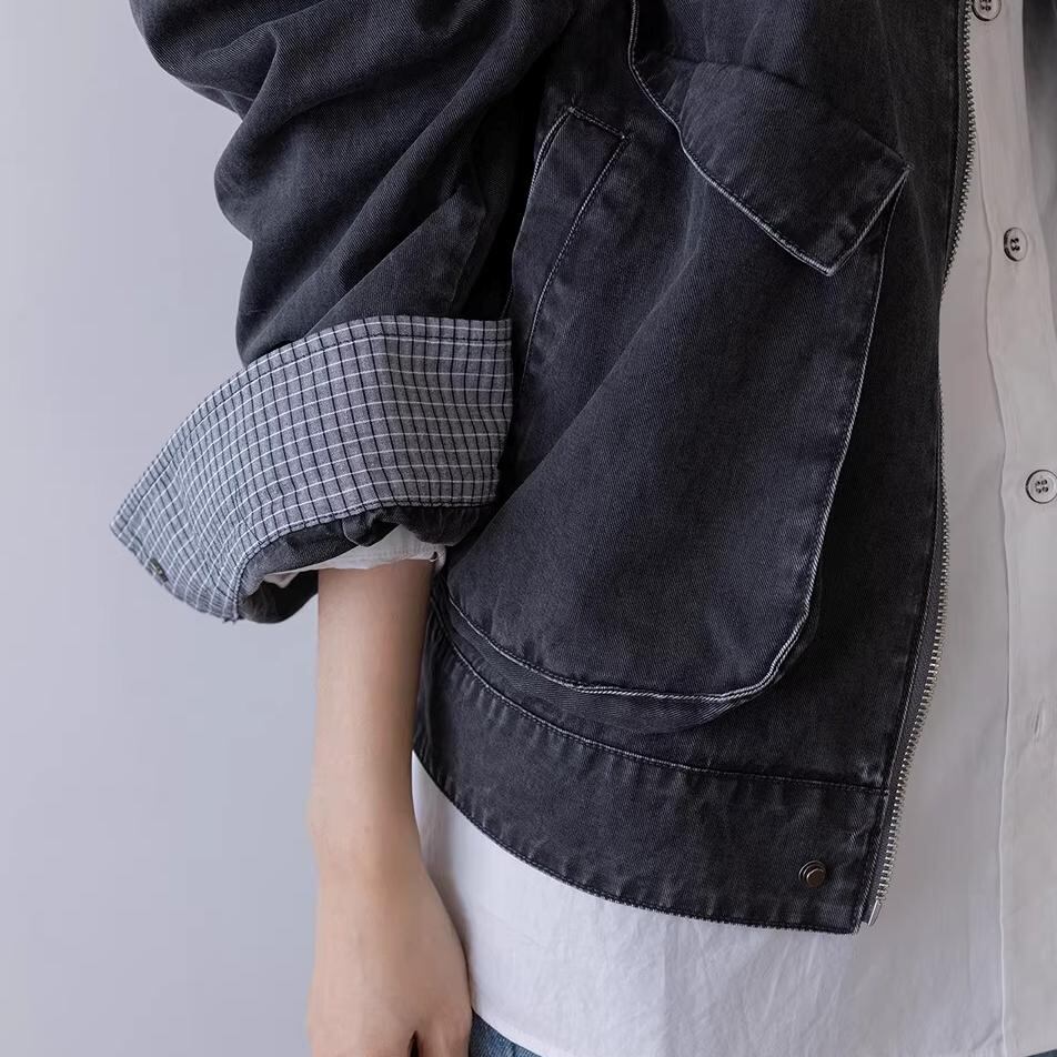 パッチポケット ヒップ丈 長袖 ジップアップ ジャケット 2color AOJ0053