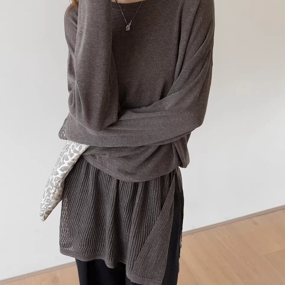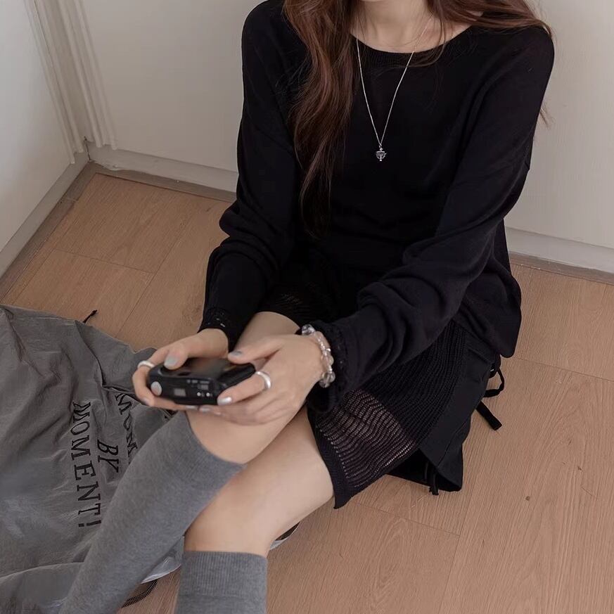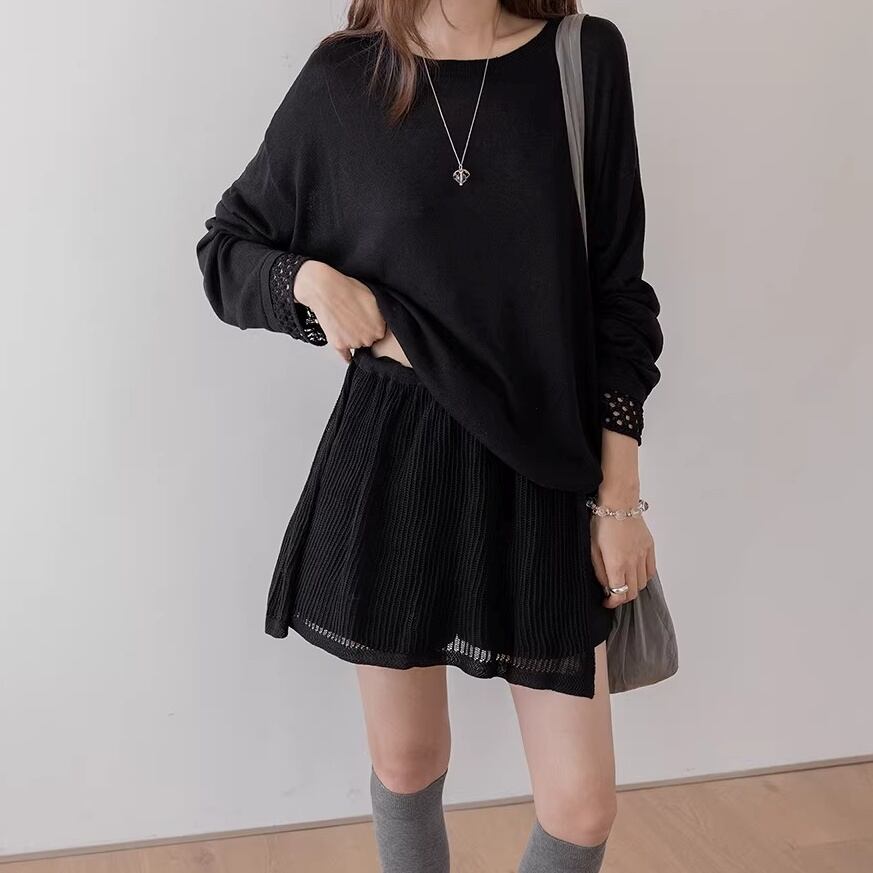 長袖 ヒップ丈 シアー ニットトップス&スカート 3color ATO0254